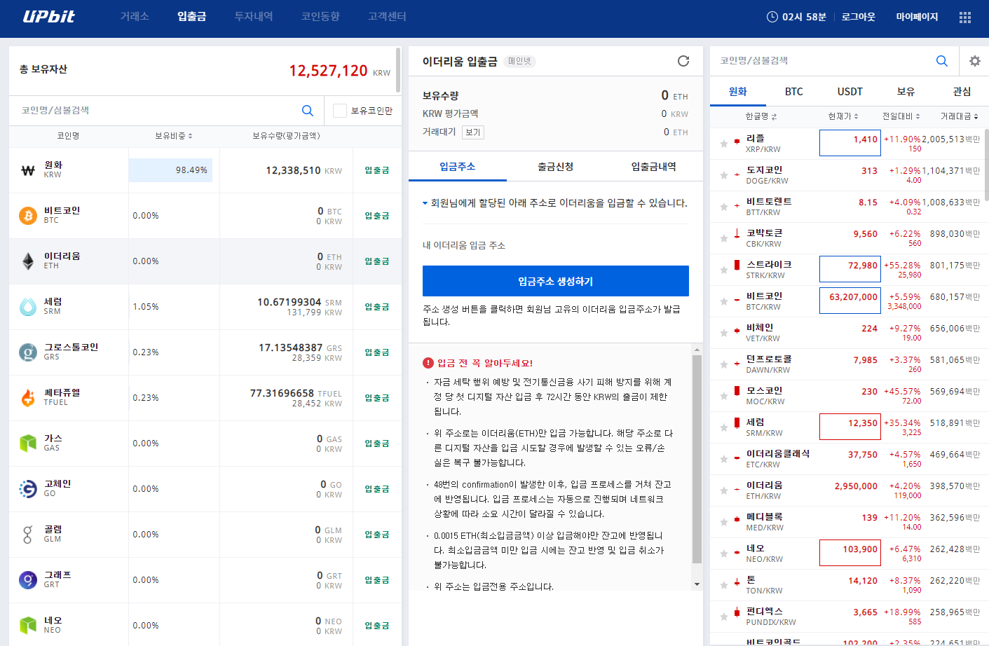 이더리움 지갑은 많이 사용하는 업비트 의 이더리움 지갑을 사용한다.