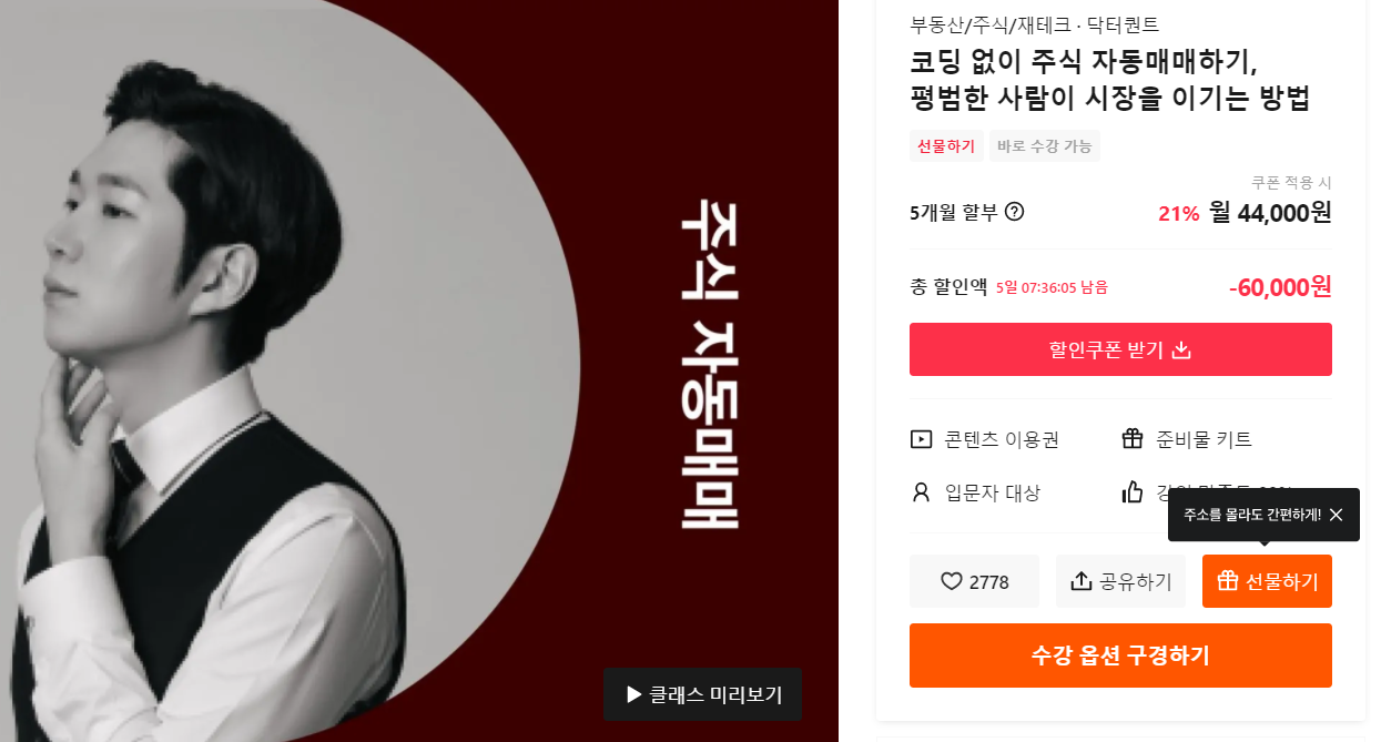[젠포트,클래스101강의 후기] 코딩 없이 주식 자동매매 수익을 낼 수 있을까?