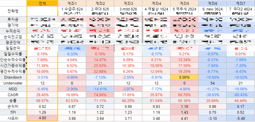 6번은 추세전략 인데 상승을 못하고 있습니다. 백테스트 결과도 하락추세에 있기때문에 당분간 더 유지할 계획입니다.