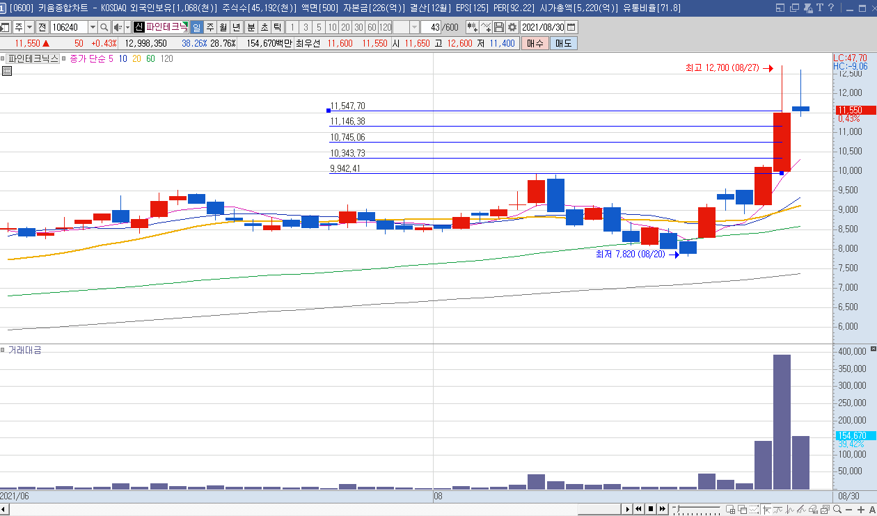 폴더블폰 연관주 그외에 재료는 없기 때문에 강한 추세를 이어나가지 못할 것으로 보이나 거래대금이 높아 시장의 관심이 높음. 주도주? 11550에 1차 매수 9750원 손절